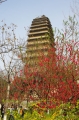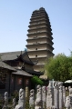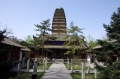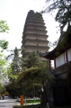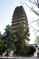小雁塔坐落在陕西省西安市南约1公里的荐福寺内。 小雁塔与大雁塔东西相向,是唐代古都长安保留至今的两处重要的标志,因为规模小于大雁塔,并且修建时间偏晚一些,故而称作小雁塔。 荐福寺原来建于唐长安城开化坊内,是唐太宗之女襄城公主的旧宅,中宗文明元年(684年)皇室族戚为高宗荐福而建造寺院,初名献福寺,天授元年(690年)改名为荐福寺,是唐长安城中著名的寺院。 唐代名僧义净于高宗咸亨二年(671年)由洛阳出发,经广州取海道到达印度,经历三十余个国家,历时25年回国,带回梵文经书400多部。神龙二年(706年)义净在荐福寺翻译佛经56部,撰著《大唐西域求法高僧传》一书,对研究中印文化交流史有很高的价值。现在荐福寺内仅存有建于唐景龙元年(707年)的小雁塔。 小雁塔是密檐式方形砖构建筑,初建时为十五层,高约46米,塔基边长11米,塔身每层叠涩出檐,南北面各辟一门;塔身从下往上逐层内收,形成秀丽舒畅的外轮廓线;塔的门框用青石砌成,门楣上用线刻法雕刻出供养天人图和蔓草花纹的图案,雕刻极其精美,反映了初唐时期的艺术风格。 塔的内部为空筒式结构,设有木构式的楼层,有木梯盘旋而上可达塔顶。明清两代时因遭遇多次地震,塔身中裂,塔顶残毁,现在仅存十三层。由于小雁塔的造型秀丽美观,各地的砖石结构密檐塔大都仿效建造,在云南、四川等地区的唐、宋时期的密檐塔虽各具地方特色,但仍可以看出与小雁塔的继承关系。 今天寺内还保存有一口重达一万多公斤的金代明昌三年(1192年)铸造的巨大铁钟,钟声宏亮,“雁塔晨钟”被誉为关中八景之一。