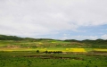在合作市的周边乡村,种植了大片的油菜花,在夏日的阳光下,在碧绿的草原的映托下,一点点白色的帐篷、红色的居民房,构筑了美丽的画面。